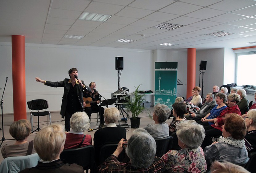 Das Programm „Erinnerungen in Dur & Moll“ wurde zwischendurch ergänzt durch Gedichte und Geschichten, vorgetragen von Mario Pschera, Projektmanager Öffentlichkeitsarbeit beim Neuen Deutschland. Mal etwas ganz anderes.