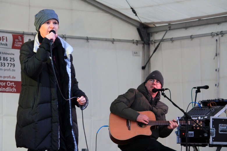 Trotz kalter Finger sorgte Ingo für die perfekte Instrumentalisierung, tanzte Gaby sich bei einigen Titeln warm. Hier zeigte es sich wieder, was Profis sind, die allen Witterungen trotzen. Das Publikum wärmte sich mit Grog, Kaffee und beim Mitklatschen.