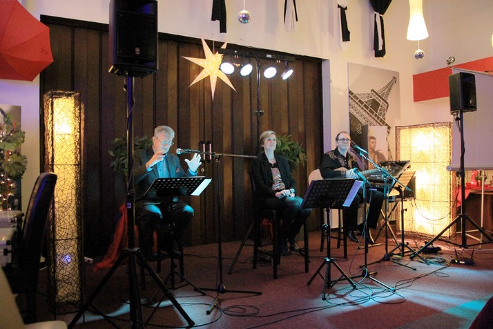 Wieder einmal hatten Falk und Familie alles perfekt organisiert, vom leckeren Kartoffelsalat mit Würstchen nach dem Konzert, bis hin zur weihnachtlichen Dekoration auf den Tischen. Feuer und Flamme waren an diesem Abend nicht nur das Publikum, sondern kurzzeitig auch eine Weihnachtsserviette auf unserem Tisch. Diese wurde jedoch sofort wieder gelöscht, während unsere Begeisterung noch lange anhielt.