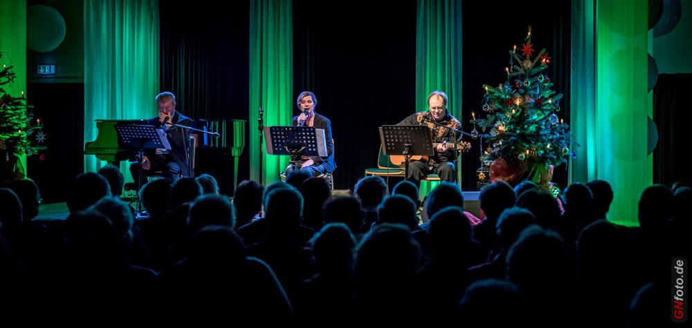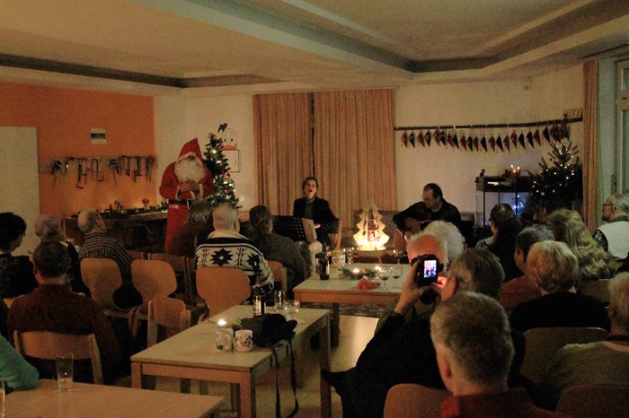 Nicken, Zustimmung, Tränen, gemeinsames Lachen und Singen dann bei Weihnachtsgeschichten und -gedichten und den Liedern von Gaby und Ingo mit ihrem Programm „Kerzenschein in der Seele“. In der Pause ein liebevoll hergerichtetes Büffet und Getränke zu erschwinglichen Preisen. Umsorgt von den ehrenamtlichen Helfern, ohne die das alles auch nicht möglich wäre, denen dafür ebenfalls Dank gebührt.